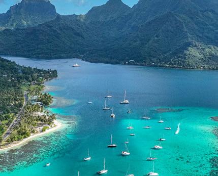 Dans la presqu'île de Tahiti, un promontoire entre mer et montagne semble voguer sur les flots tel un immense navire.